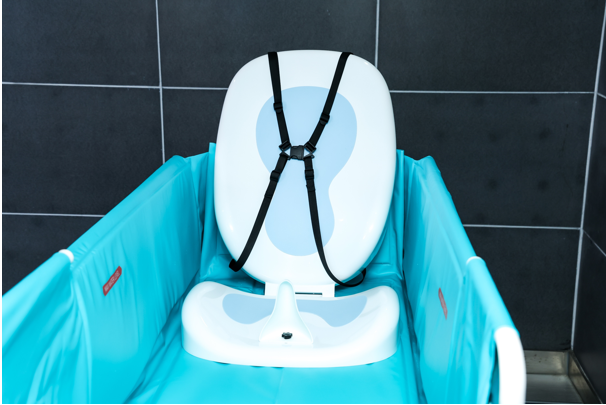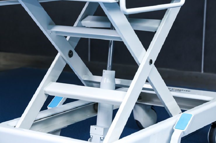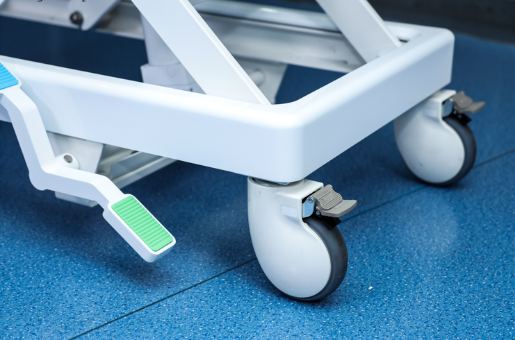 Our Rolling Medical Bathtub can be moved up or down, based on need, simply by stepping on the peddles on either side of it.