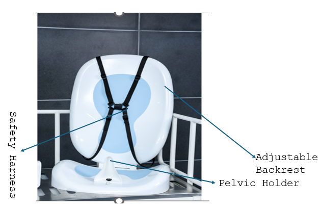 - Pelvic piece acts as a safety device to eliminate the chances of sliding down into the bathtub.